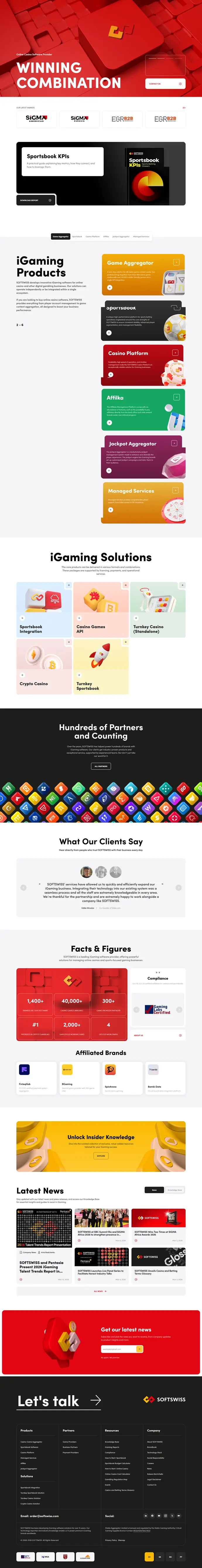 Page d'accueil du site la plateforme de SoftSwiss