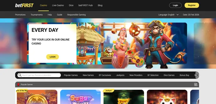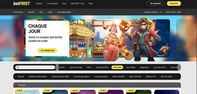 Interface de la page d'accueil du casino en ligne betFIRST