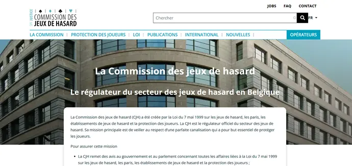 Interface de la commission des jeux de hasard en Belgique