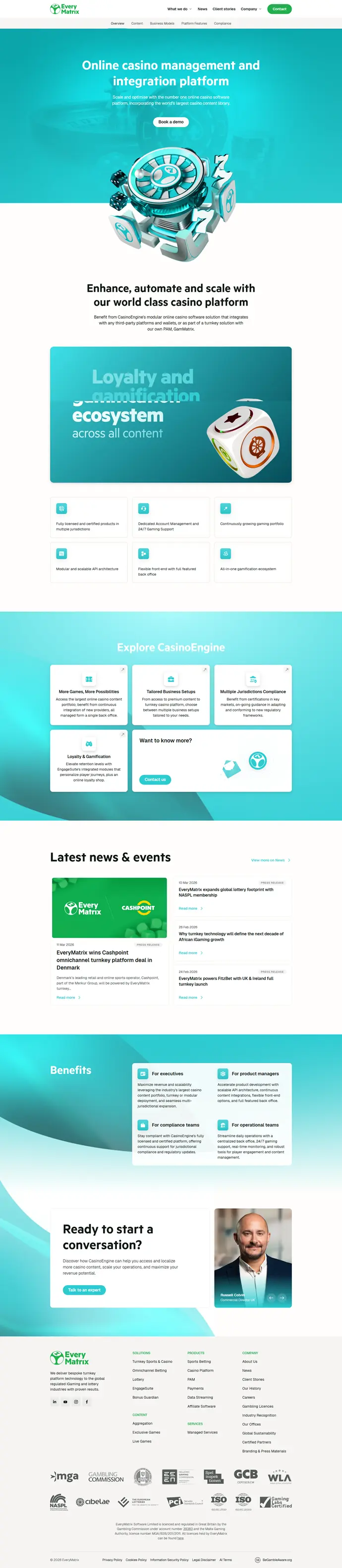 EveryMatrix développe depuis plusieurs années CasinoEngine. Il s'agit d'une plateforme d’agrégation conçue pour simplifier l’intégration de contenus de jeu. Dans un casino en ligne contemporain, le lobby peut contenir des centaines, parfois des milliers de jeux provenant de fournisseurs différents. Sans solution d’agrégation, chaque intégration demanderait des développements techniques spécifiques, des tests et des mises à jour permanentes.
