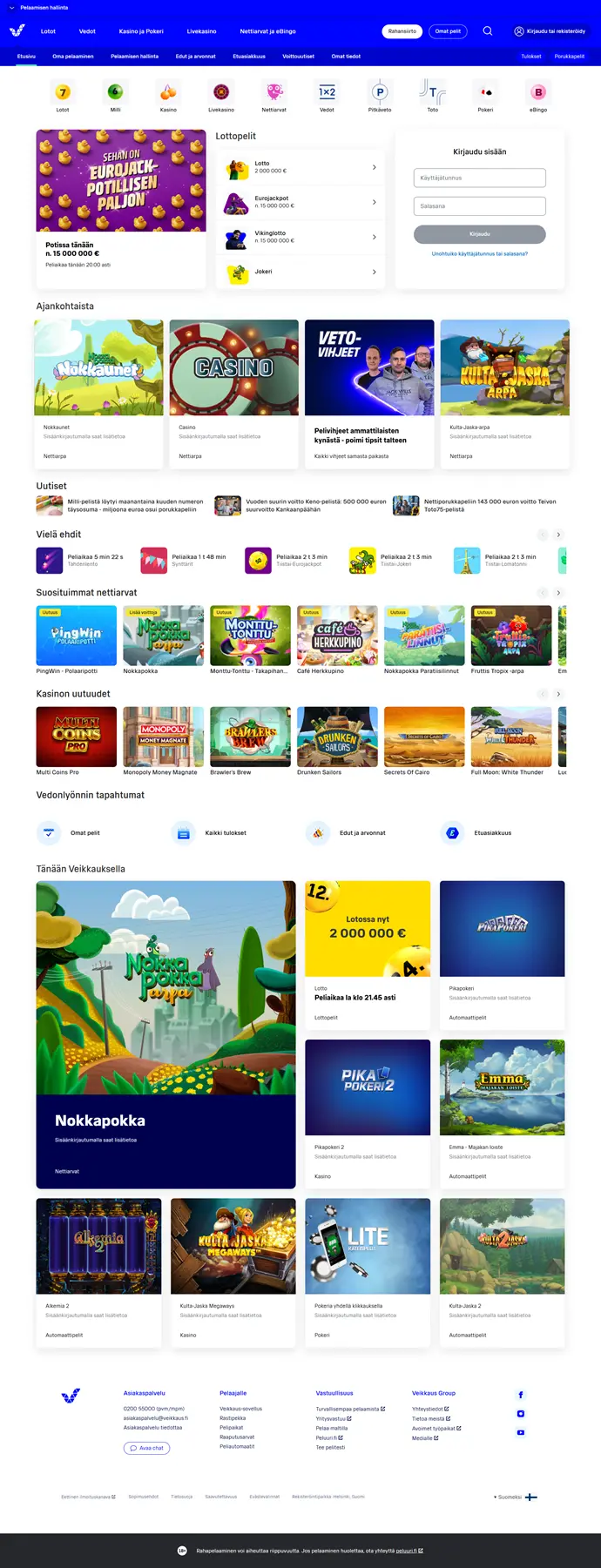 Page d'accueil du casino en ligne Veikkaus