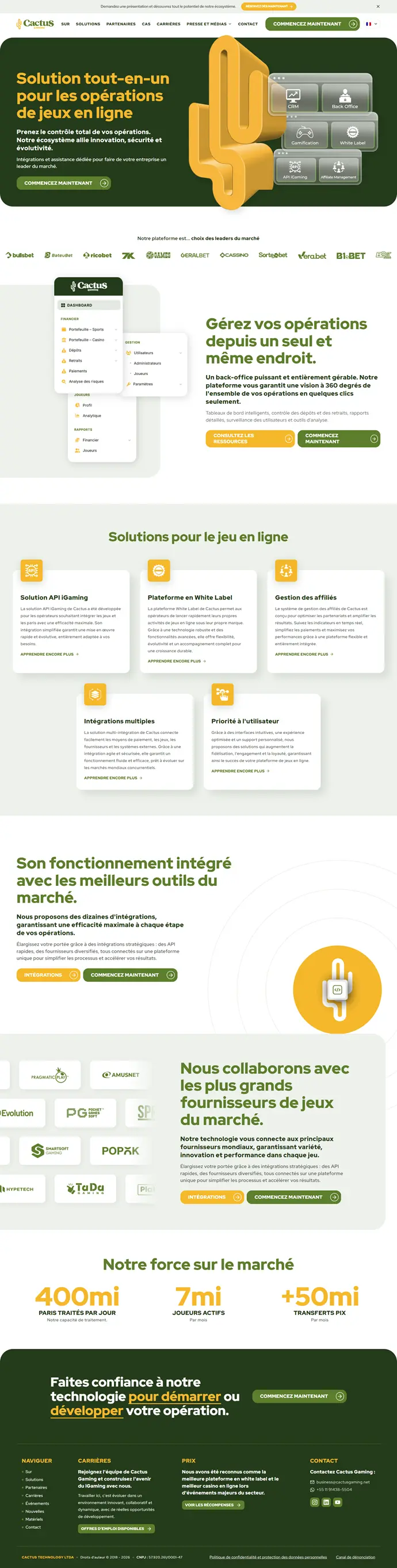 À travers cette solution, Cactus Gaming gagne en élégance, en lisibilité et en impact visuel. Le joueur découvre un univers mieux orchestré et fidèle à la signature de l’opérateur. Cette qualité perçue nourrit naturellement le confort d’usage pour renforcer l’attractivité globale de l’offre.