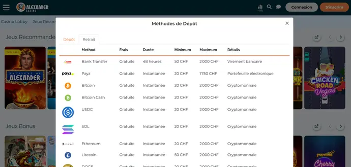 Cette clarté joue également un rôle central dans la comparaison avec d’autres casinos en ligne du même groupe. Par exemple, Lucky31 qui offre un ensemble de prestations équivalentes. Parfois, ce sont souvent les conditions bancaires qui font la différence. Rapidité des retraits, diversité des crypto-monnaies, plafonds journaliers, absence de frais, pédagogie autour des dépôts… Ce sont autant de critères qui pèsent lourd dans la balance et que la section banque d’Alexander met volontairement en avant.