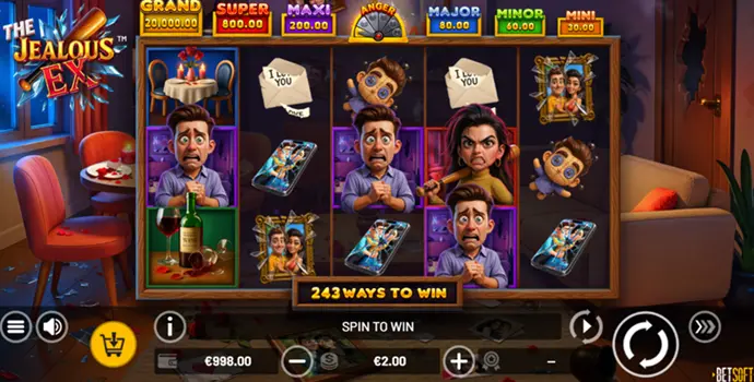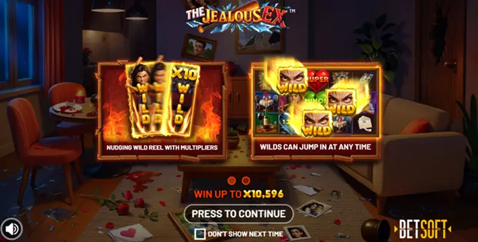 The Jealous Ex™ est une machine à sous vidéo de Betsoft Gaming. Le jeu s’appuie sur une thématique de rupture sentimentale, de jalousie et de scène de ménage sous tension. L’action se déroule dans un salon ravagé par la colère. Les objets brisés, les symboles chargés de sens et les personnages incarnent une situation émotionnelle instable. Cette ambiance influence directement le gameplay et le rythme des fonctionnalités.