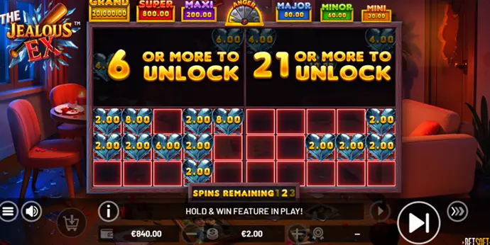 La Hold & Win Feature constitue le bonus central de The Jealous Ex™ ! Elle se distingue par sa progression lente et sa capacité à transformer radicalement la configuration du jeu.
