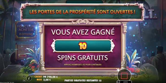 Les Wilds multiplicateurs peuvent afficher des valeurs allant jusqu’à 100x individuellement ! En cumulant plusieurs Wilds pendant les Free Spins, le multiplicateur global peut atteindre des niveaux très élevés ! Le gain maximum théorique de CULT. est de 10 000x la mise !