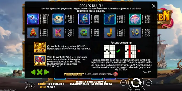 Dans cette version Megaways, le Kraken devient narrateur. Pas un narrateur explicite, mais celui qui tire les ficelles du rythme. Lorsque les 6 rouleaux se mettent à ralentir de manière imperceptible, lorsque les sons deviennent plus lourds, lorsque les couleurs s’assombrissent, on sait qu’il est là, tout près ! Ce jeu n’a pas besoin de son visage pour imposer sa présence. Le Kraken est partout comme l'est un dieu !