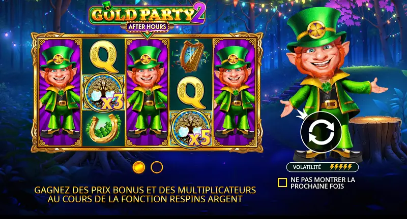 Dans ma carrière de rédacteur, j'ai vu passer des dizaines de machines à sous irlandaises. Des arcs-en-ciel, des chaudrons, des trèfles… Oui, tout ça, je connais. Mais Gold Party 2 – After Hours™ est arrivé un soir d’insomnie. Et là, j’ai compris que cette suite n’avait rien à voir avec le folklore habituel.
