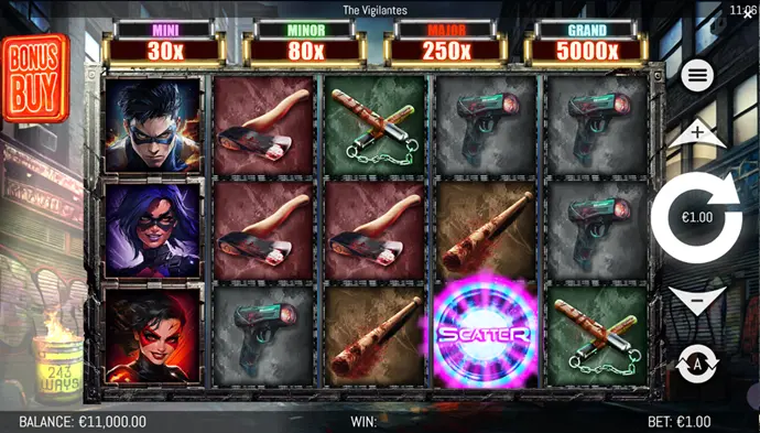 Ici, on descend dans une ville éclairée au néon, où des justiciers anonymes se fondent dans la nuit. Les Cash Awards surgissent comme des éclats de lumière. Les X Pots explosent comme des feux d’artifice urbains. Le Super Bonus, capable de multiplier jusqu’à 10x, donne une montée d’adrénaline. L’atmosphère est dense, vibrante, presque cinématographique.